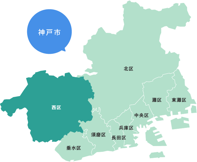 〒651-2295 神戸市西区糀台5丁目4-1神戸市西区役所2階 TEL:078-940-9501(代) FAX:078-995-5601