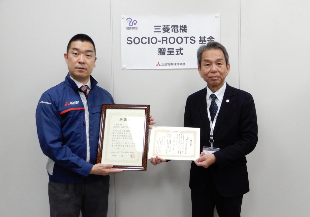 三菱電機株式会社 神戸製作所様より、本会「三菱電機SOCIO-ROOTS(ソシオ・ルーツ)基金」へ942,038円の寄付をいただきました。