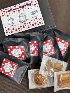 バレンタイン限定のドリップバッグコーヒーと、よかよかくらぶの米粉のフィナンシェ2個とたんとたると1個のスイーツ詰め合わせギフトBOXです。