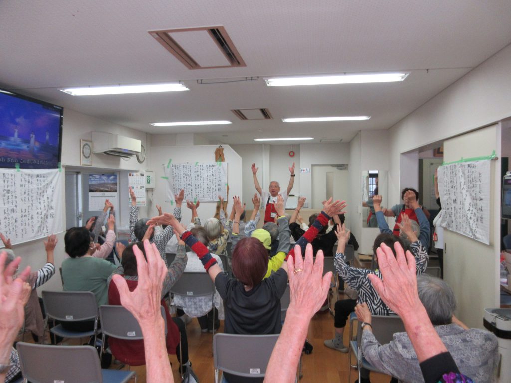 会食後は1階に集合してトントントンカラリの体操をしました。
