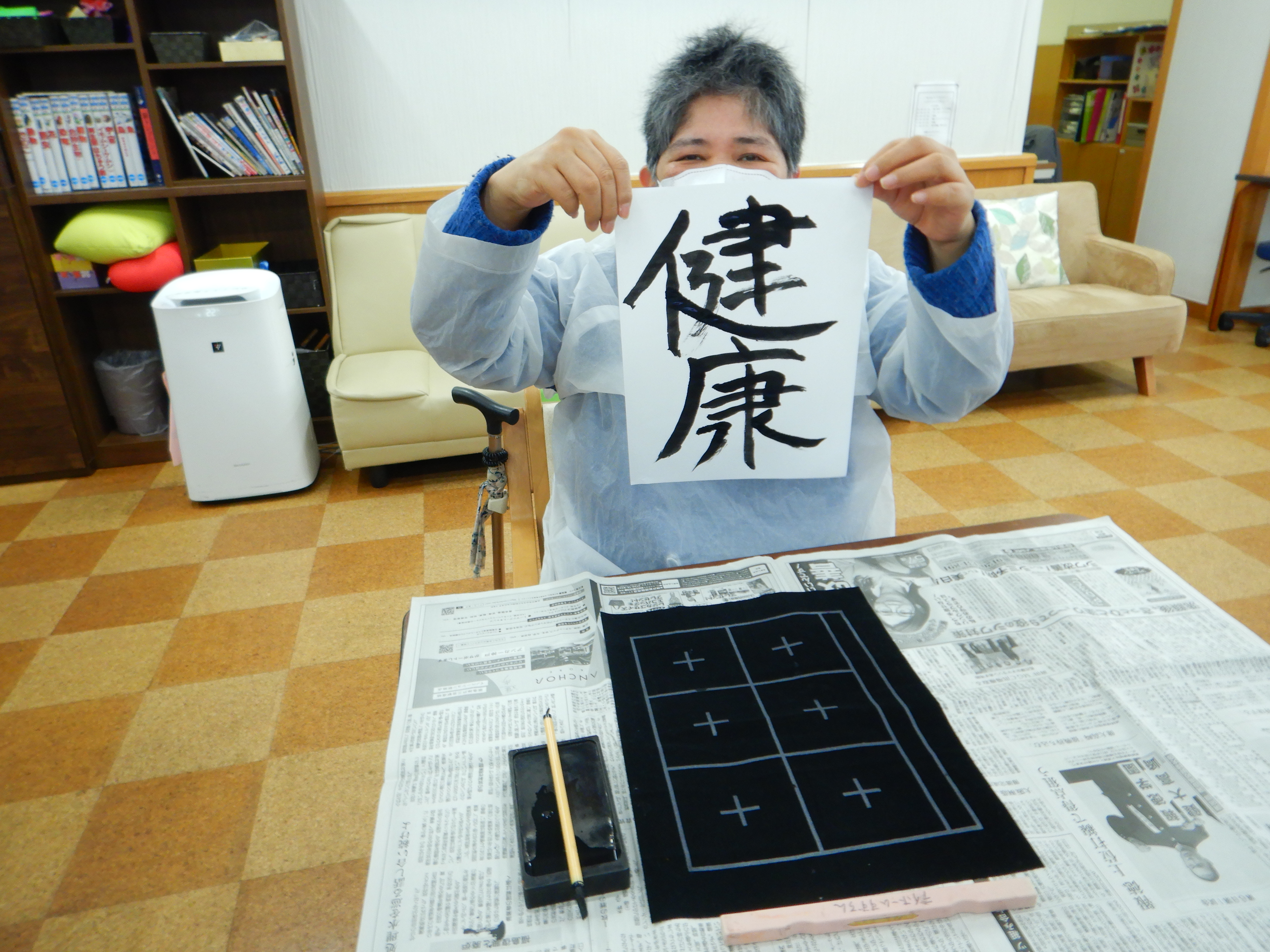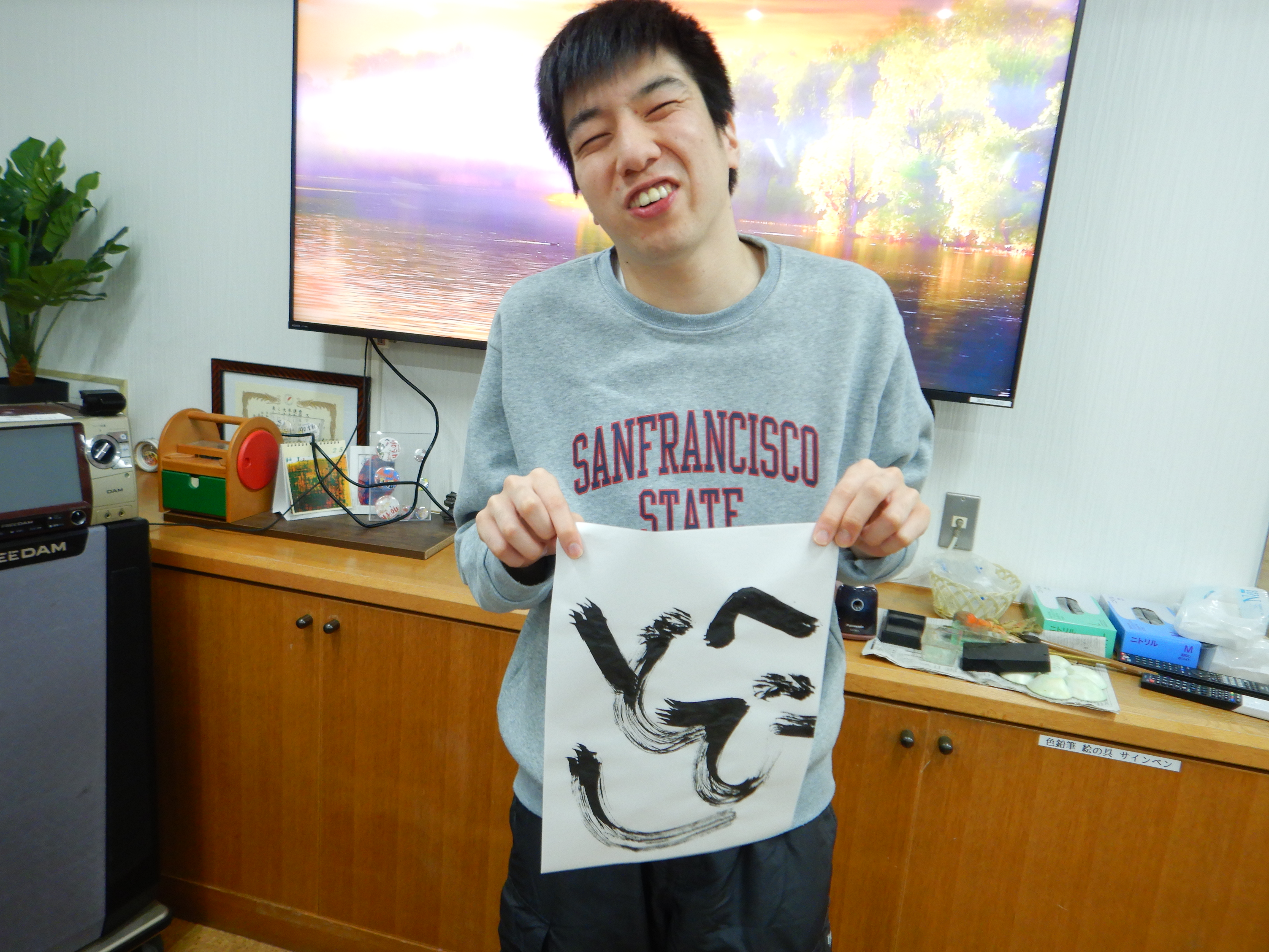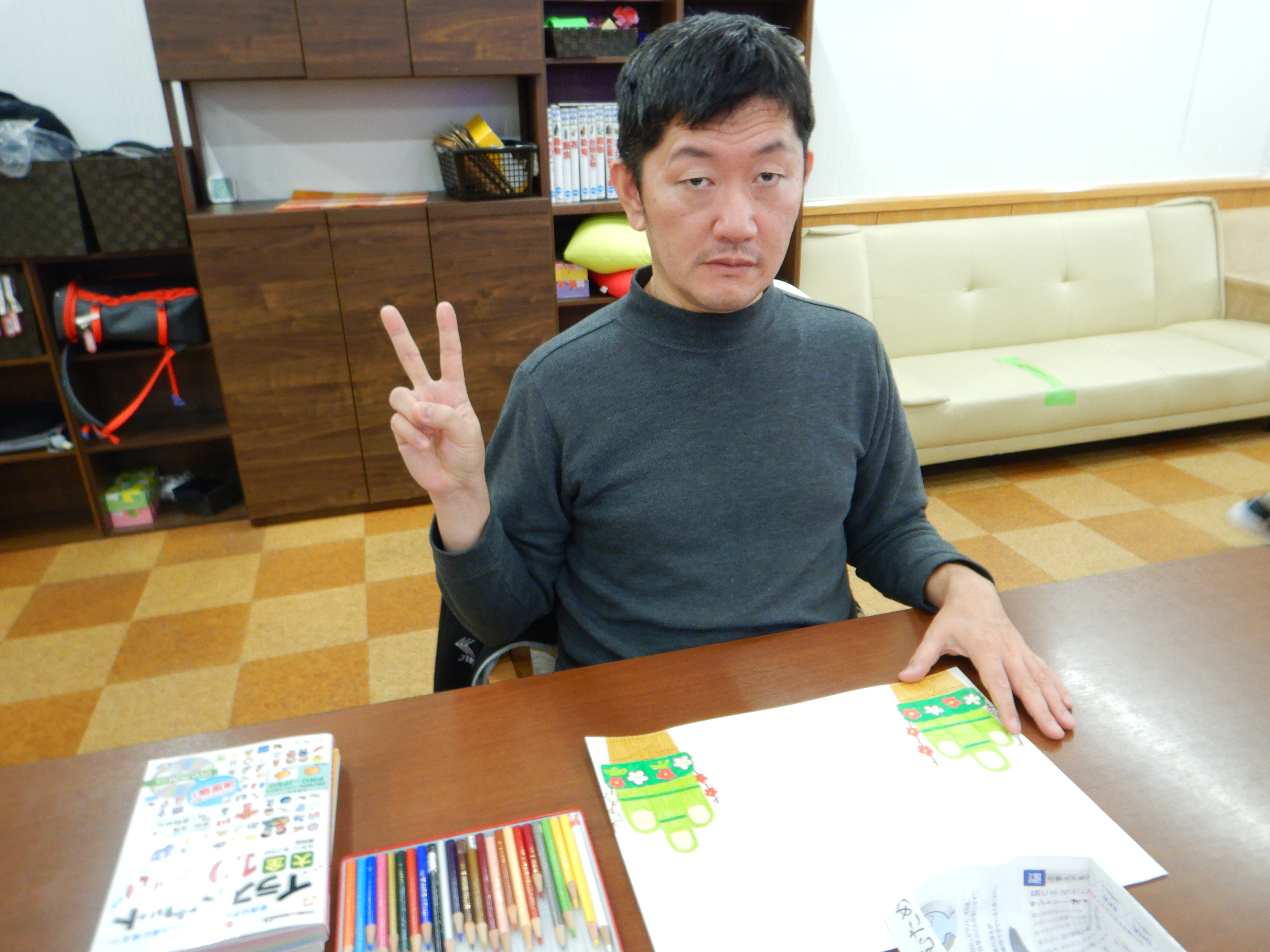 新年を迎え、スマイルすずらんでは書き初めや門松の絵を描く活動を行いました。