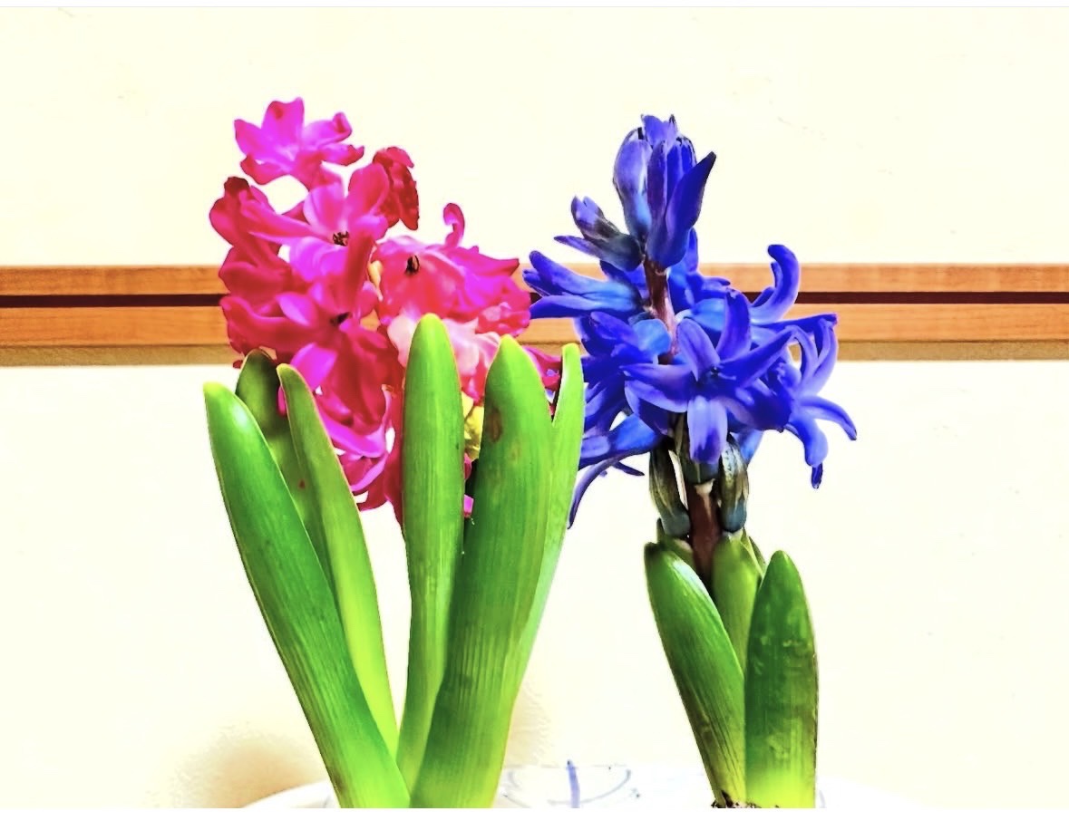 思い立ったのは12月中旬。始めるには少し遅い時期でしたが、ホームセンターで残りわずかの小さな球根を手に入れ、「育つかしら…」と不安を抱えながらスタート。それでも、芽が出て葉が伸び、2月にはピンクと青紫の花が咲いてくれました。