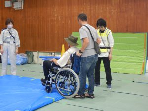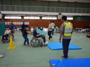 北区自立支援協議会として地域の皆さまに“車いす操作訓練”を実施させていただきました。悪路を想定した柔らかいマットの上を押してみたり、段差を上り下りしたりする訓練を行いました。「マットの上は重くなるね。」や「段差が上がれない。」などの声も聞かれ、いざという時の良い訓練になったのではないかと思います。