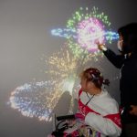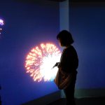 『光のミュージアム』という暗いお部屋の壁に触れると、花火が現れます。