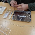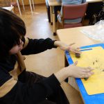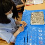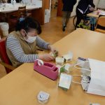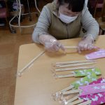 利用者様が描いたイラストをコピーして箸袋にしています。 ビーズの作業は細かく、とても根気が必要になります。
